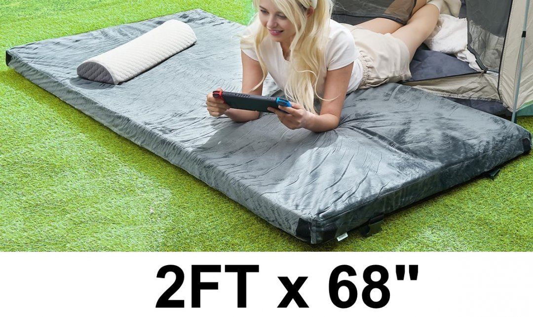 Roll-Up Portable Memory Foam Camping Mattress With Carry Bag - 2FT x 68" - GREY