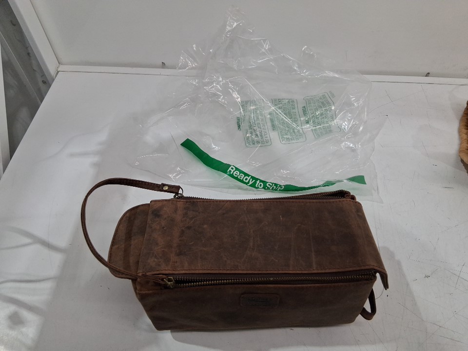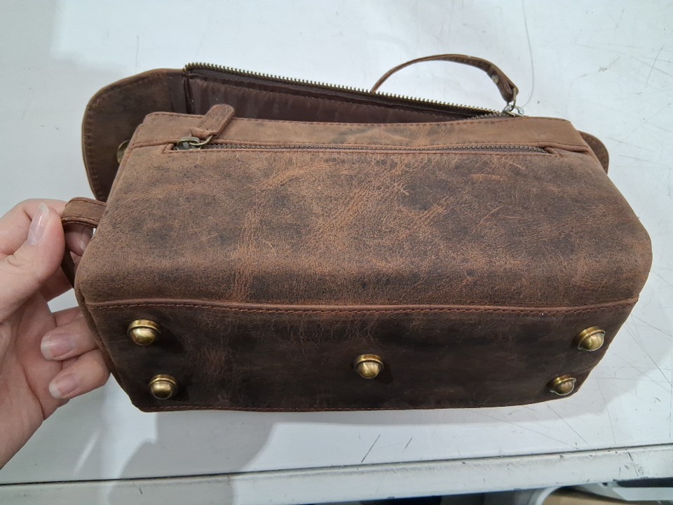 LEATHER VILLAGE PREMIUM TRAVEL TOILETRY BAG - RUSTIC BROWN