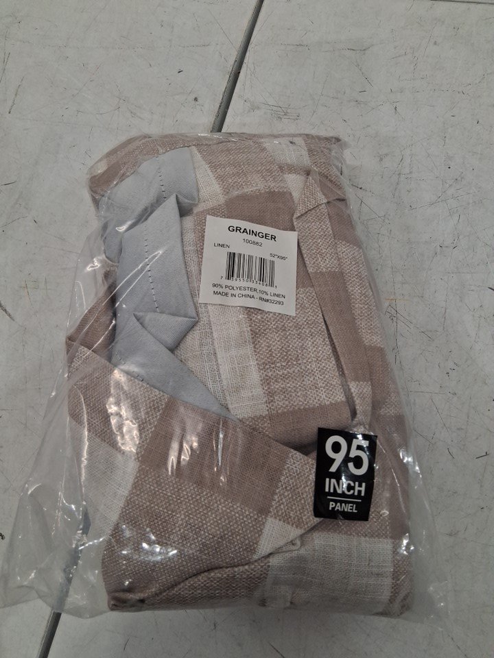 (1 panel) Elrene Home Fashions Farmhouse Living Grainger Buffalo-Check Blackout rod pocket tab back Window Curtain - 52" x 95" - linen beige