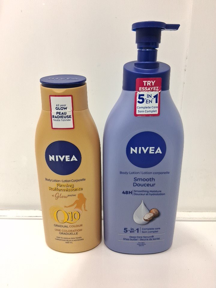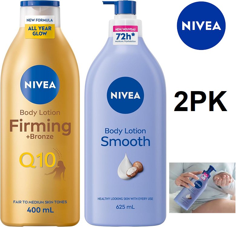 2PK NIVEA BODY LOTIONS - FIRMING + BRONZE Q10 (400ML) & SMOOTH 72H MOISTURE (625ML)