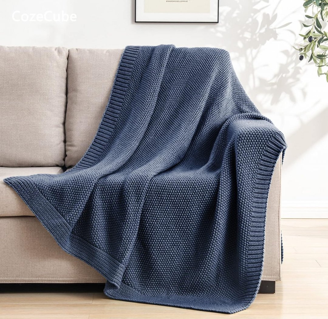 CozeCube Blue Cable Knit Throw Blanket for Bed, Couch, Living Room - 50" x 60" - Dusty Blue