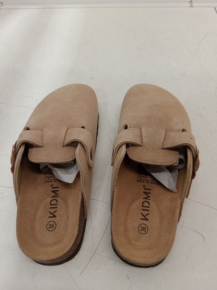 womens kidmi slip on suede backless loafer shoe - size 5.5/6 - tan