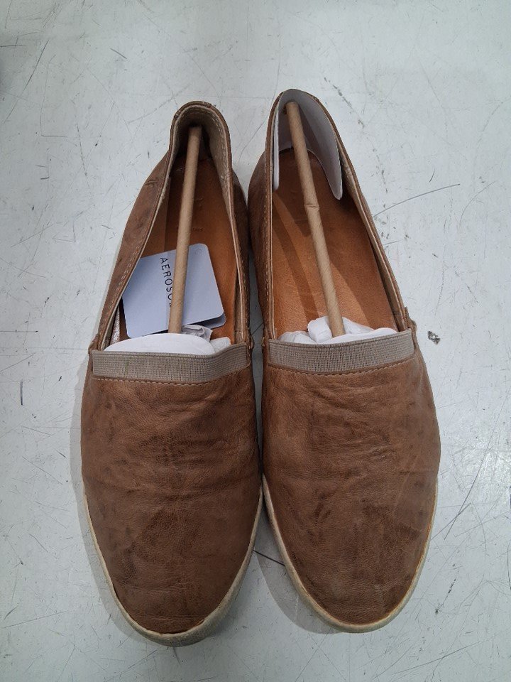 Item shows previous signs of use such as dirt on bottom and side of soles.