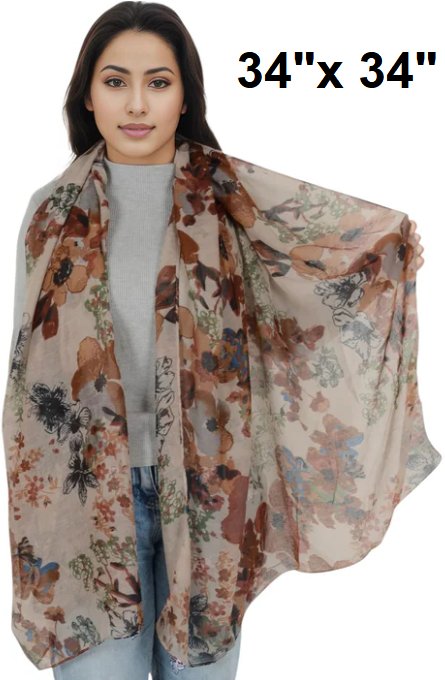 women's delicate floral print lightweight scarf wrap head shawl - 34" x 34" - browns/pinks