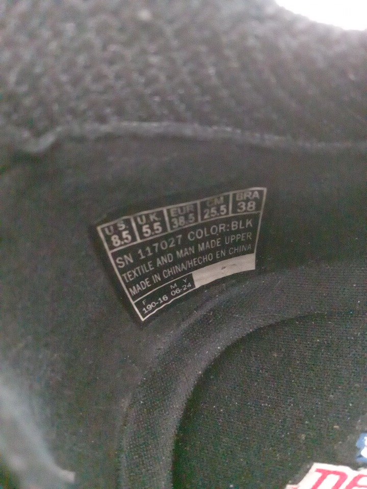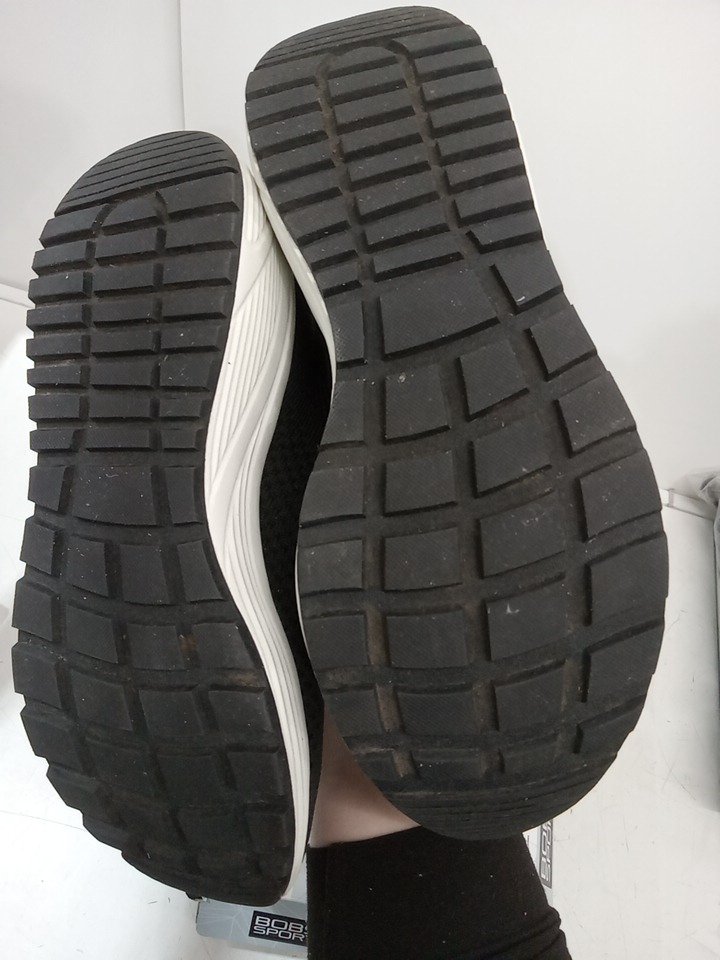 Some pet hair inside the shoe and some dirt on the treads from previous use.