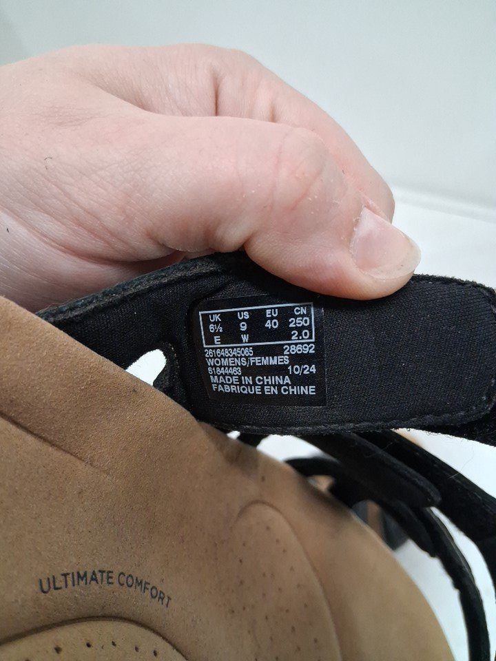 Item appears to be floor model with light dirt on soles.