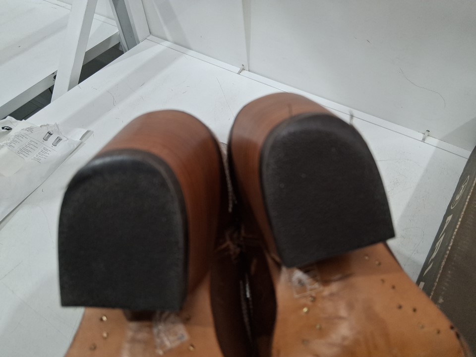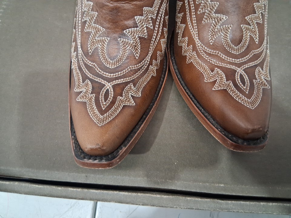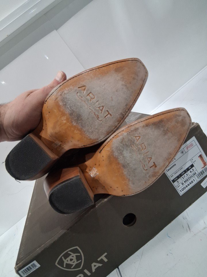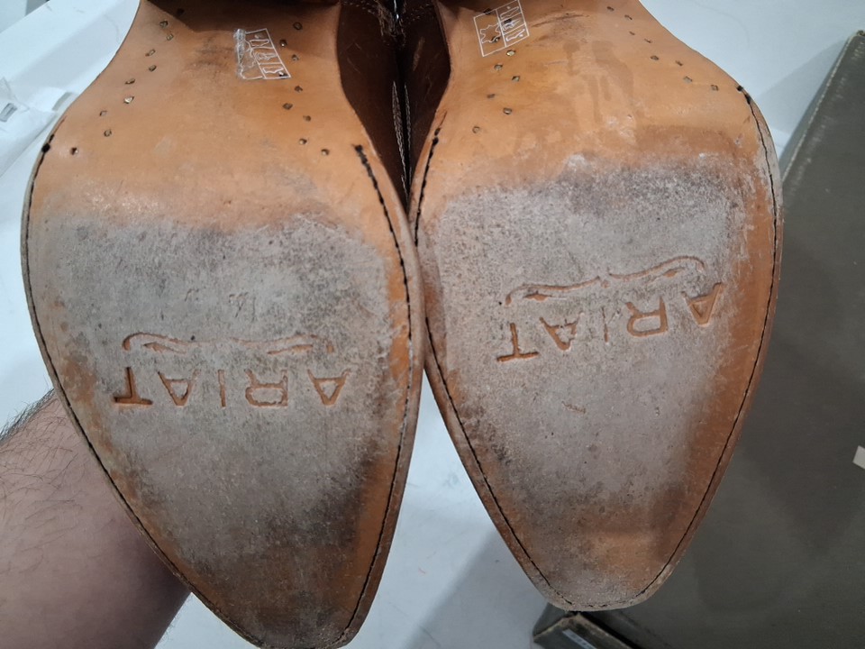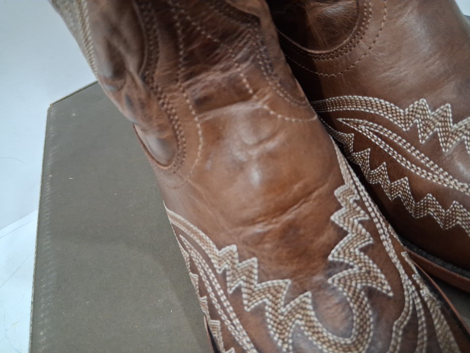 there is some scuff and scratch marks on both boots and bottom of the boots have some damage there is some wrinkling near the ankle on both boots and some damage on the toes of the boots please see photos