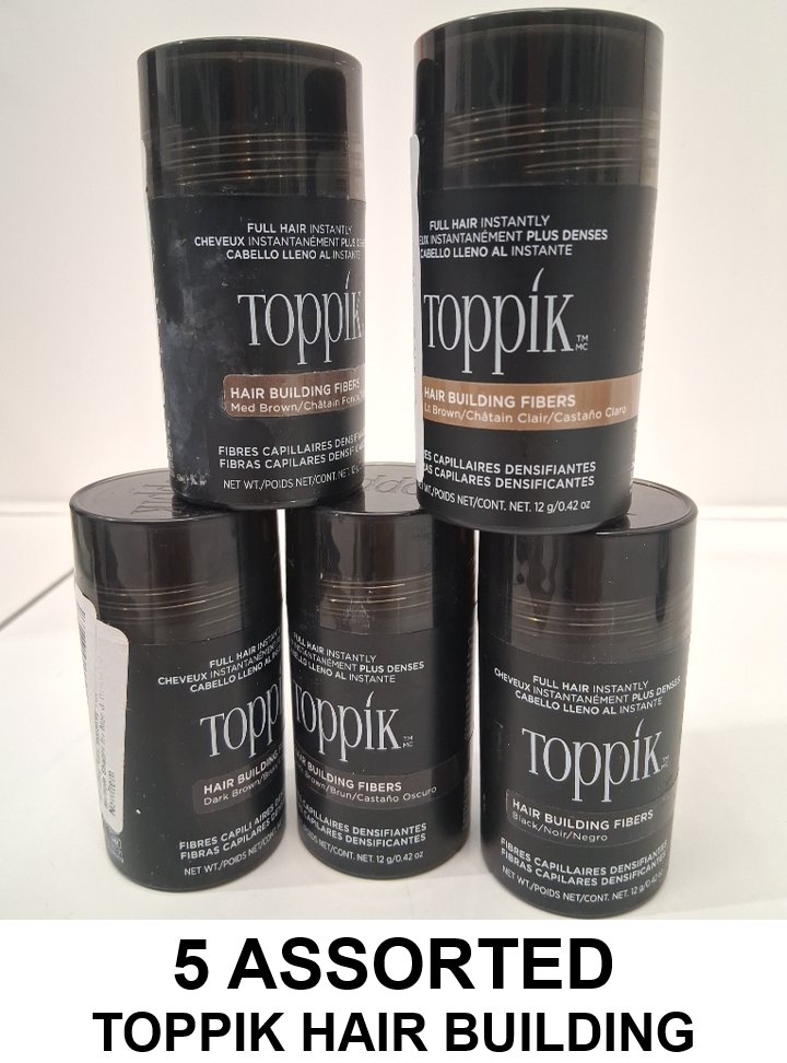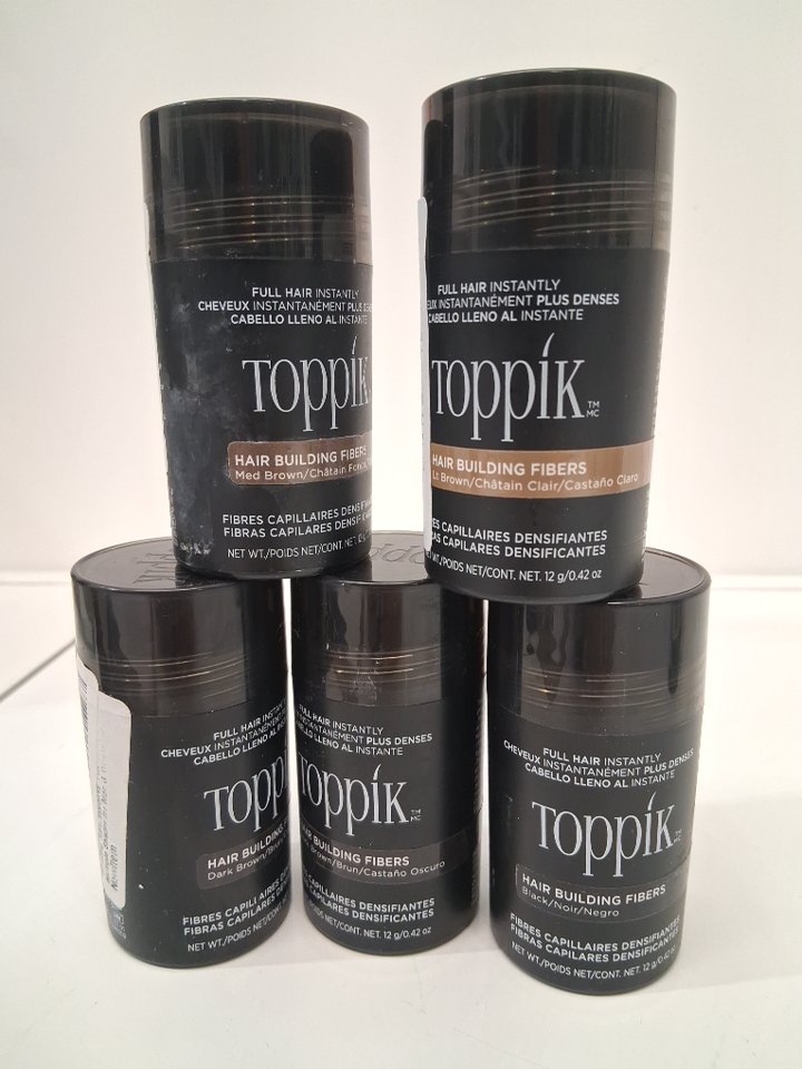 5 ASSORTED TOPPIK HAIR BUILDING FIBERS - ASSORTED COLOURS