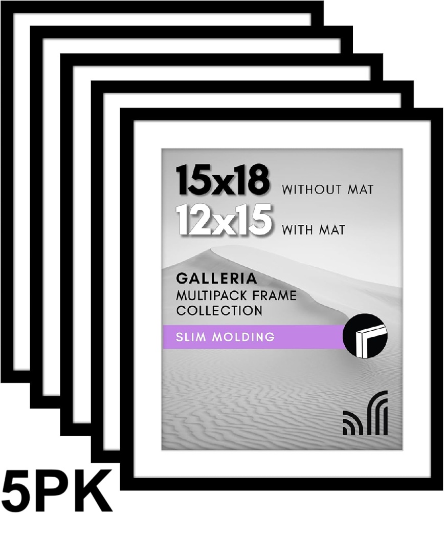 5PK AMERICANFLAT PICTURE FRAME WITH POLISHED PLEXIGLASS AND MAT - 15" X 18" / 12" X 15" WITH MAT - BLACK