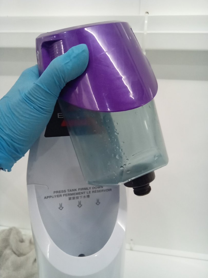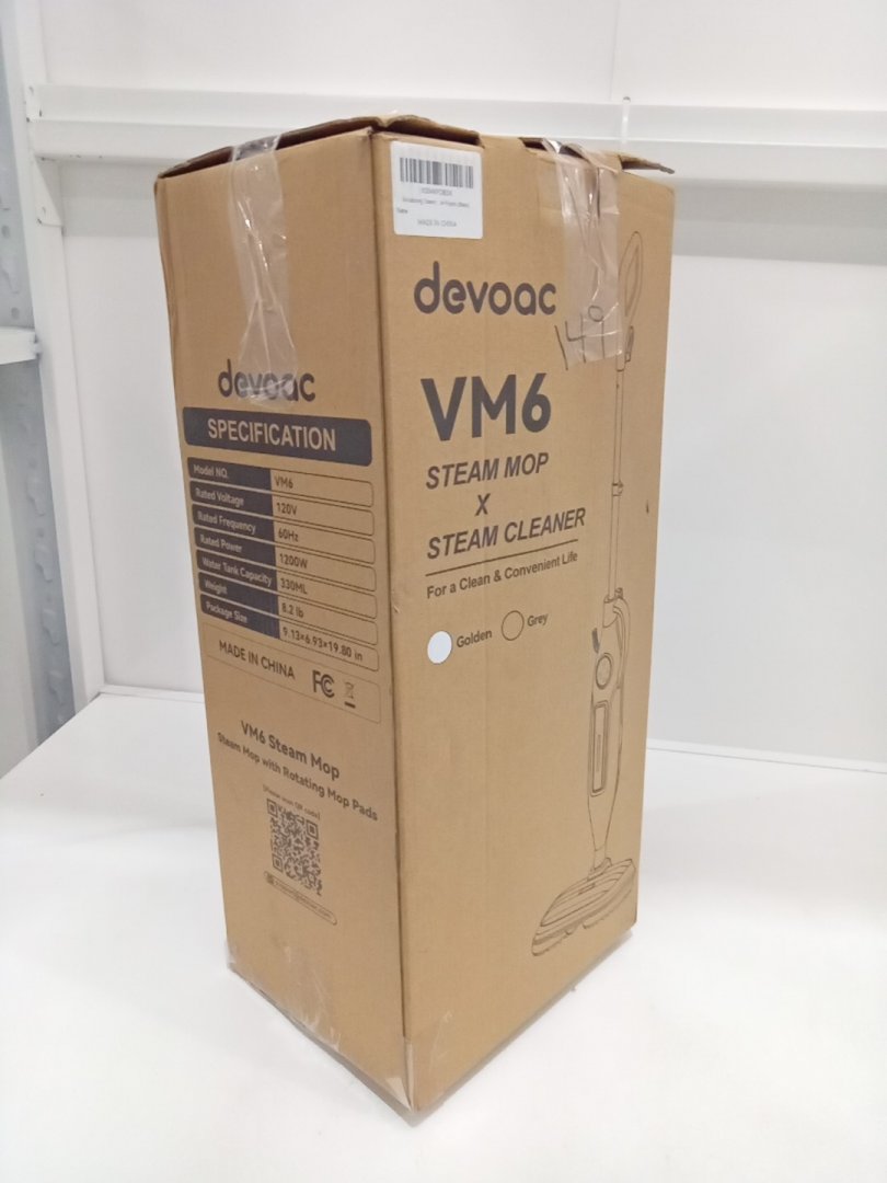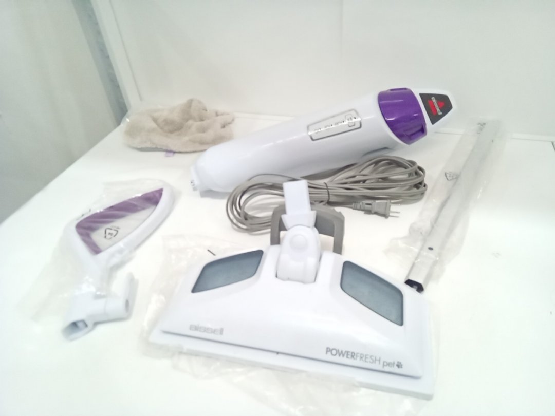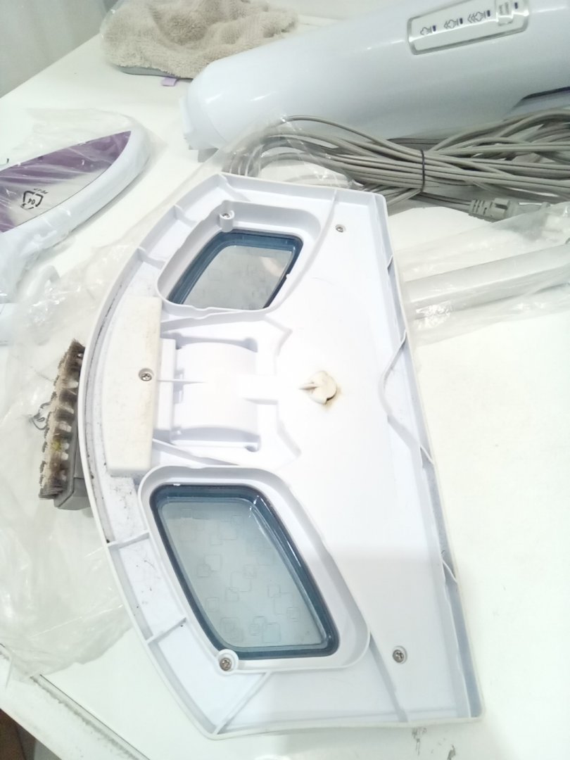 Tested for power only. Residual water, dirt and hair on mophead and dirt stains on pad from prior use. ** Please note that item has been repackaged into a box belonging to a DIFFERENT item. Thank you for your understanding! **