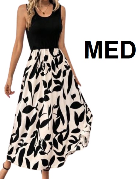 Tall Summer Casual Leaf Print Patchwork Sleeveless Dress - medium - black