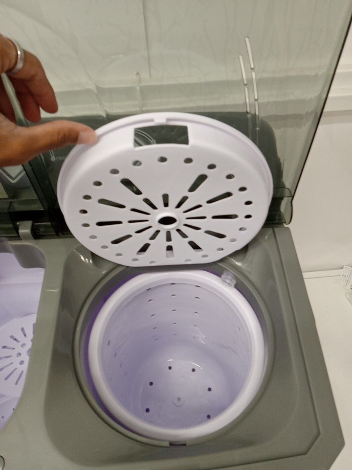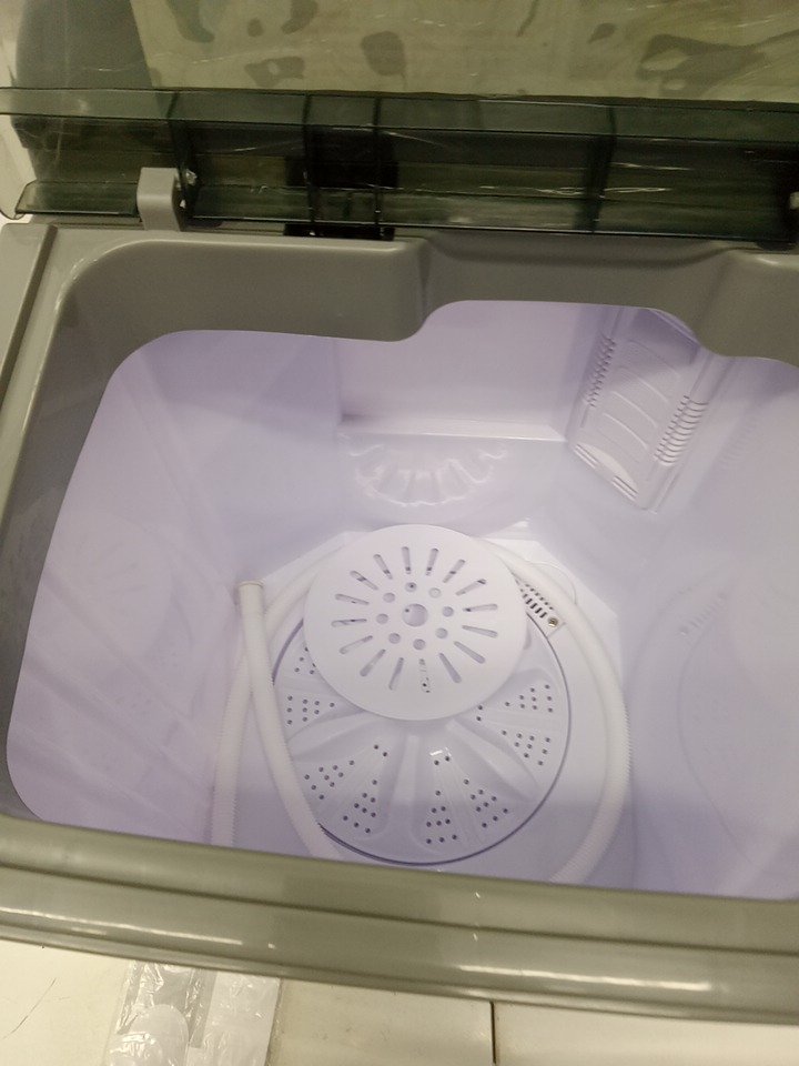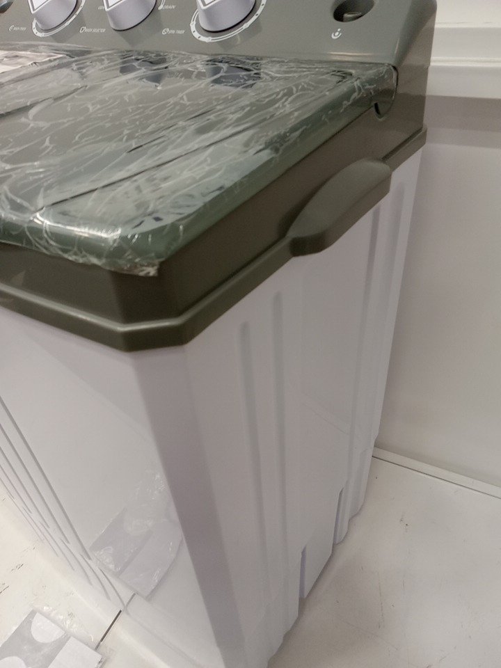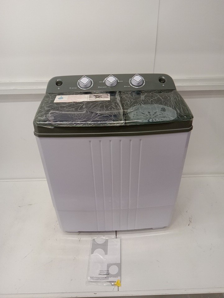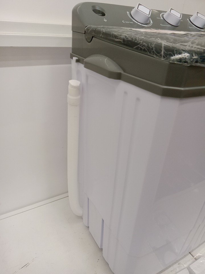 Costway Portable Semi-automatic Twin Tub Washing Machine with Drain Pump - 110V - 26LBS CAPACITY - WHITE/GREY (MODEL: FP11048US-GR)