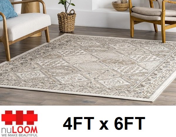NULOOM BECCA TRADITIONAL TILED AREA RUG, 4FT x 6FT - beige (model: owmn04d)