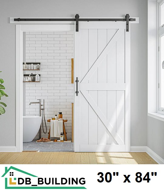 ldb building paneled barn door, k-frame barn door with installation kit - 30" x 84" - white (model: wf-mdf-30-k-wt)