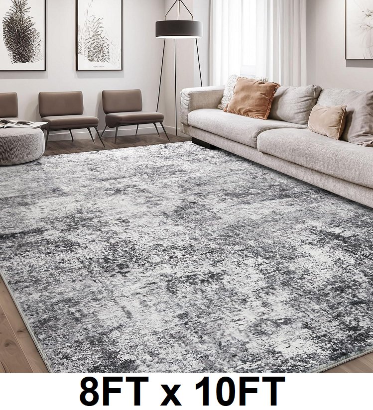 dmoyest ultra soft modern abstract machine washable living room area rug carpet - 8ft x 10ft - grey
