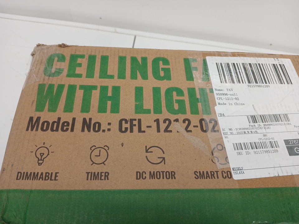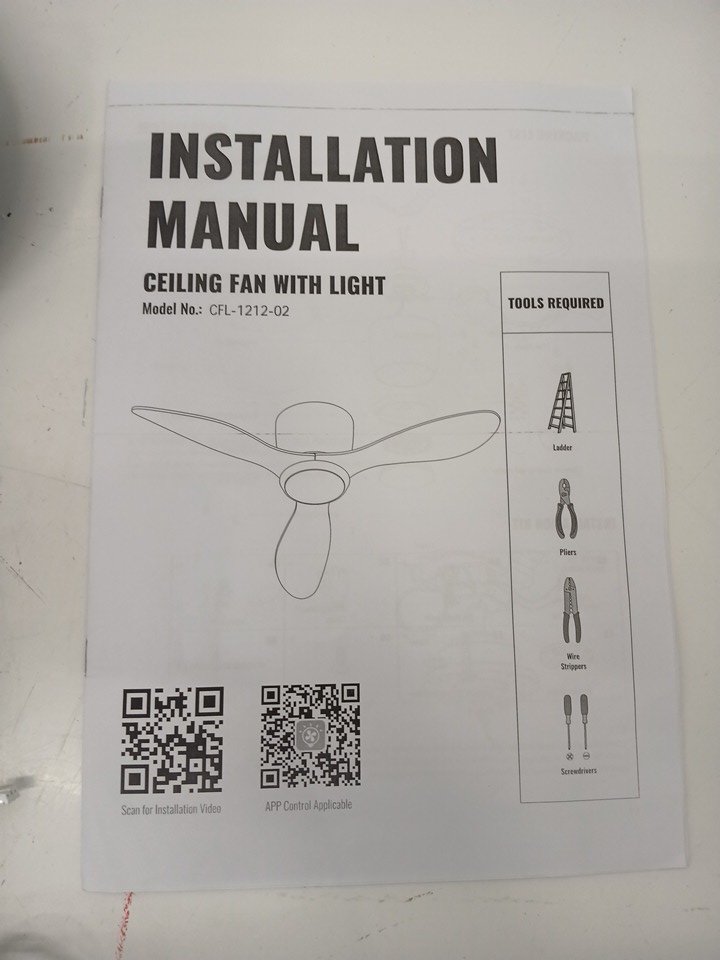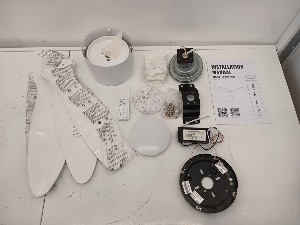 ludomide low profile ceiling fan with wall control, dimmable light & remote - 42" - white (model: cfl-1212-02)