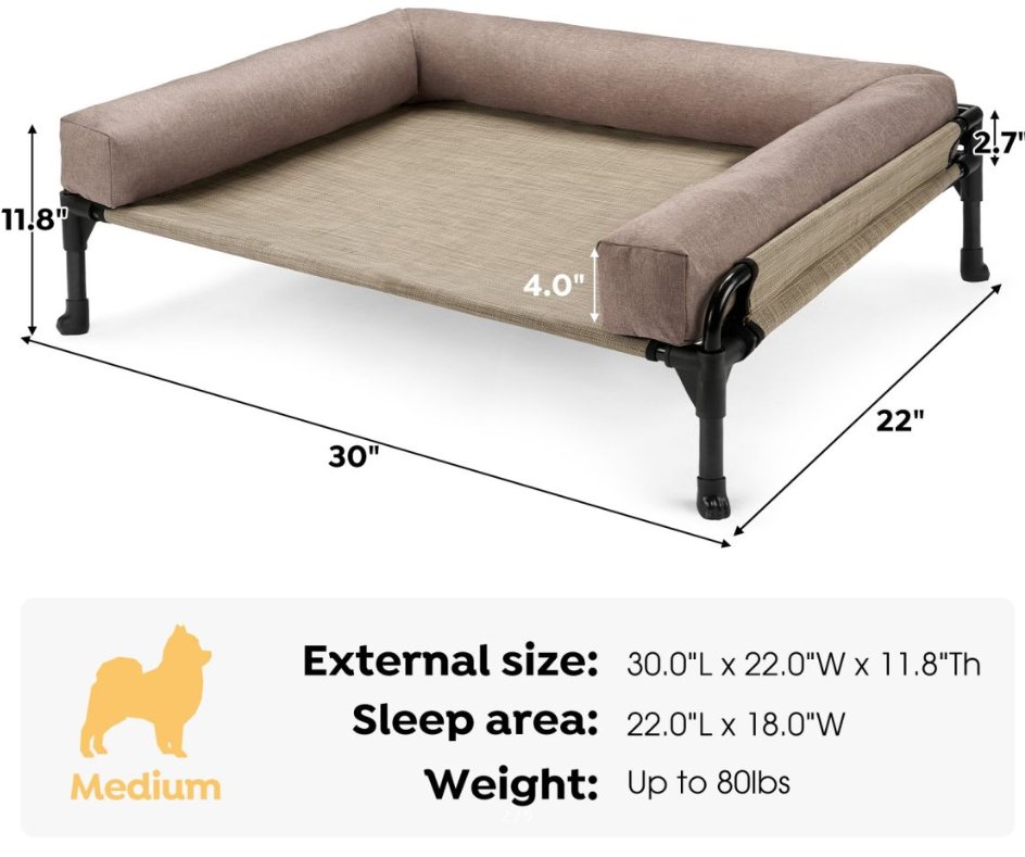 Veehoo elevated pet bed with cushion - medium (30"x22"x11.8") - beige (model: cwc2410b)