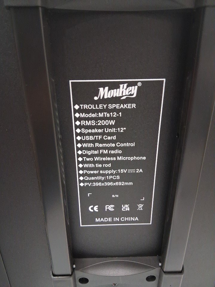 MOUKEY KARAOKE & PA SPEAKER WITH BLUETOOTH - 12'' SUBWOOFER (MODEL: MTS12-1)