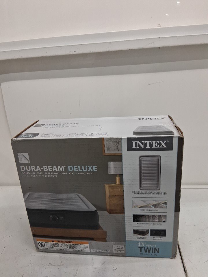 INTEX DURA-BEAM SERIES DELUXE COMFORT PLUSH MID RISE AIRBED WITH INTERNAL ELECTRIC PUMP - 13" HEIGHT - TWIN - (MODEL: AP619D/67765ED)