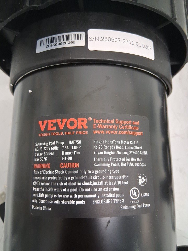 VEVOR POOL PUMP - 1HP - 4800 GPH MAX FLOW (MODEL : HAP750)