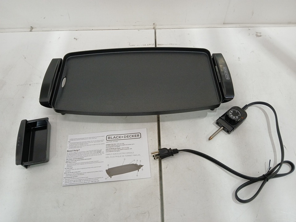 BLACK+DECKER Electric Griddle with Removable Temperature Probe, Indoor Grill, Pancake Griddle - 1440w - 21" x 9" - Black (MODEL: GD1810BC)