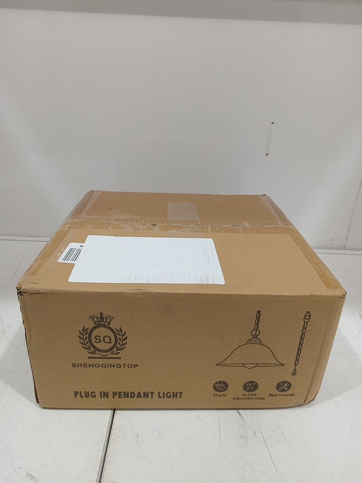 SHENGQINGTOP TRADITIONAL PLUG-IN DIMMABLE ALABASTER GLASS SHADE HANGING PENDANT LAMP LIGHT - 12" X 6.3" - 16.4FT CORD - 14.7FT CHAIN - 60W 110-120V - YELLOW/black