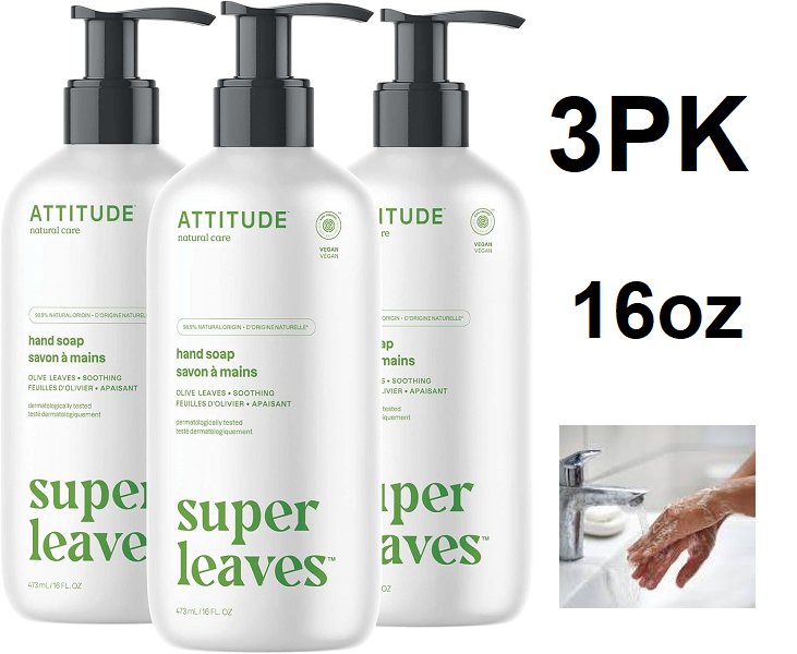 3pk ATTITUDE Plant and Mineral-Based Liquid Hand Soap - 16oz - Olive Leaves