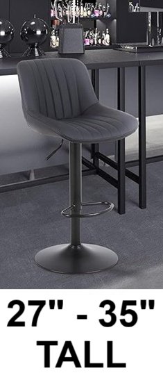 Adjustable Swivel Counter Height Barstools with Back - 27" - 35" TALL - Black (Model: WH-8001)