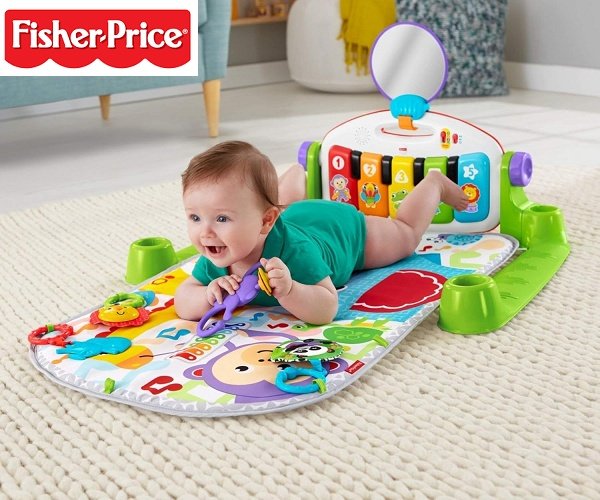 fisher-price baby musical kick & play piano gym with playmat and sensory toys - multicolour (model: fgg44)