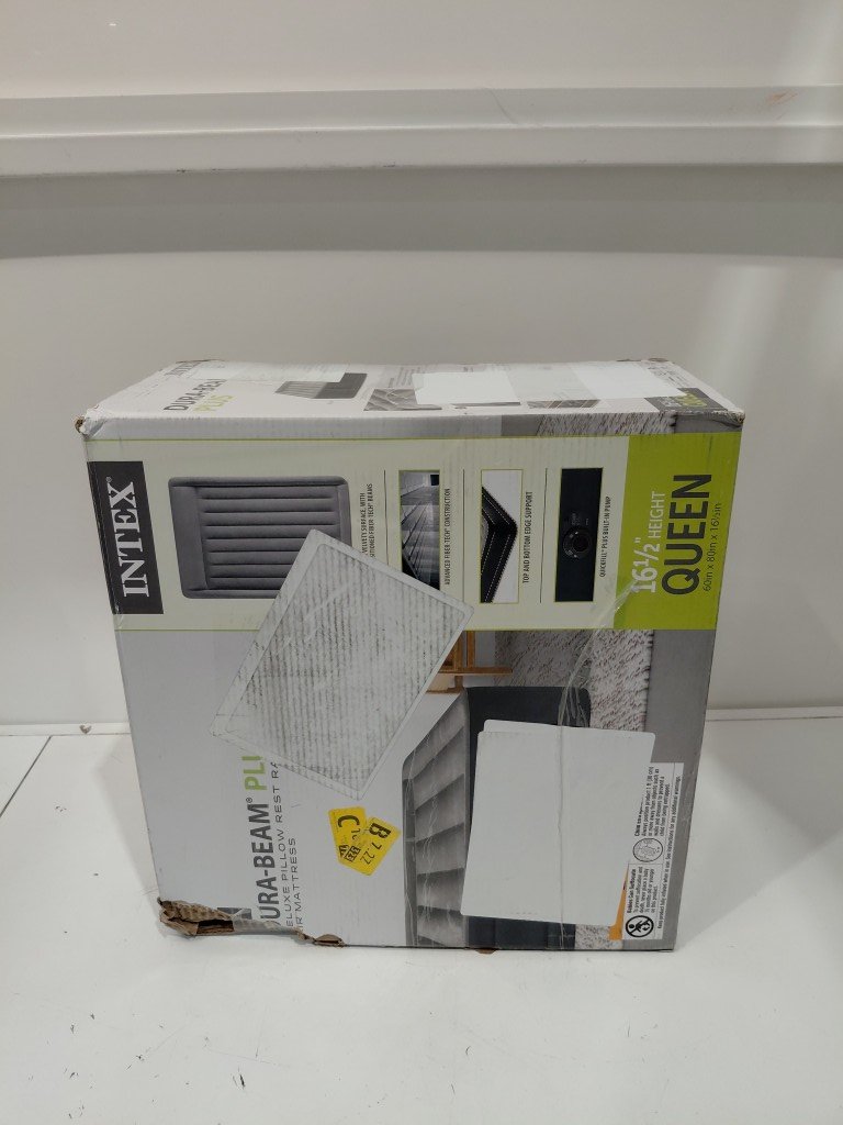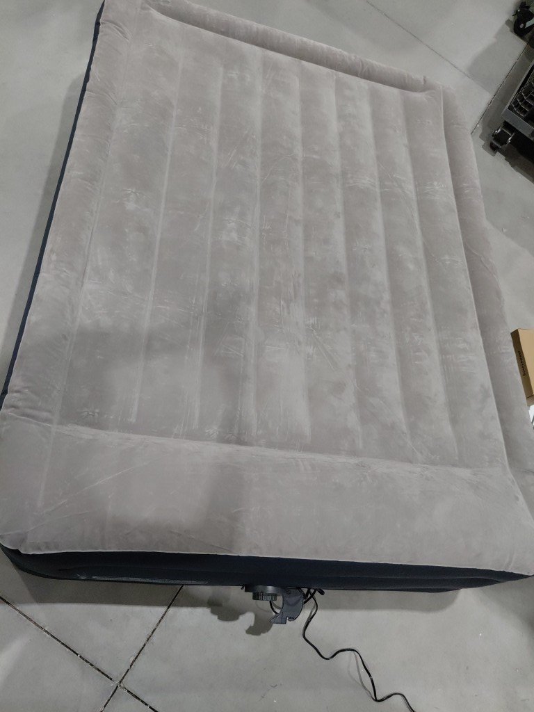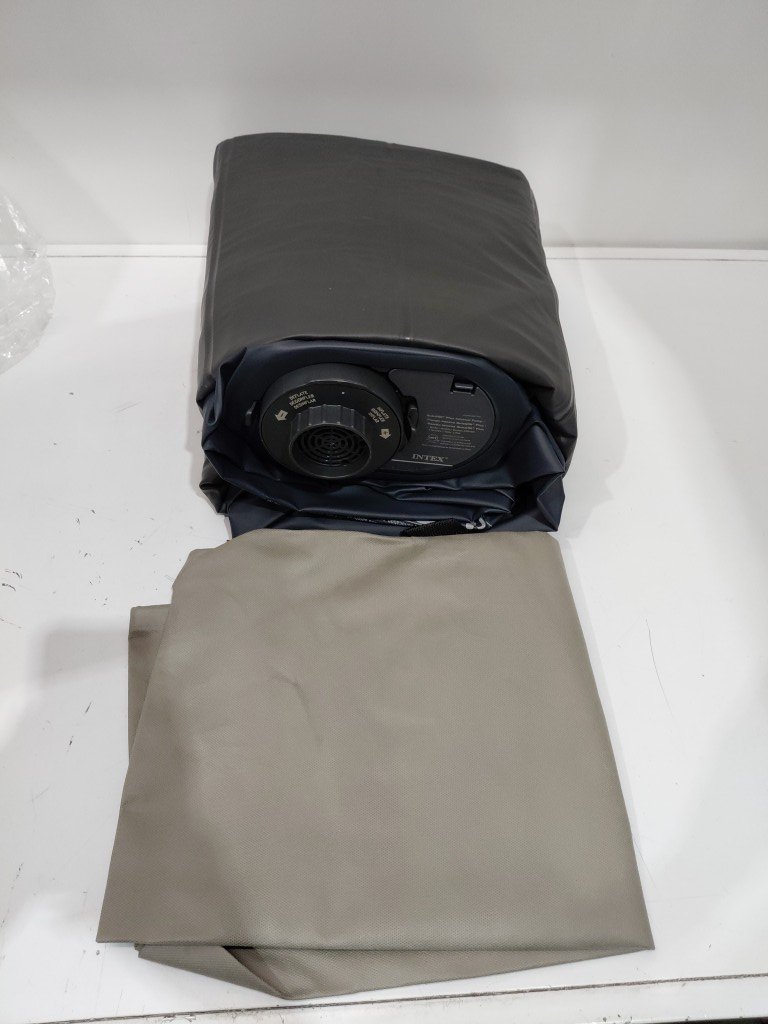 INTEX DURA-BEAM SERIES DELUXE COMFORT PLUSHFIBER-TECH inflatable AIR mattress WITH INTERNAL ELECTRIC PUMP - 18" - QUEEN - grey (MODEL:AP619D/64413ED)