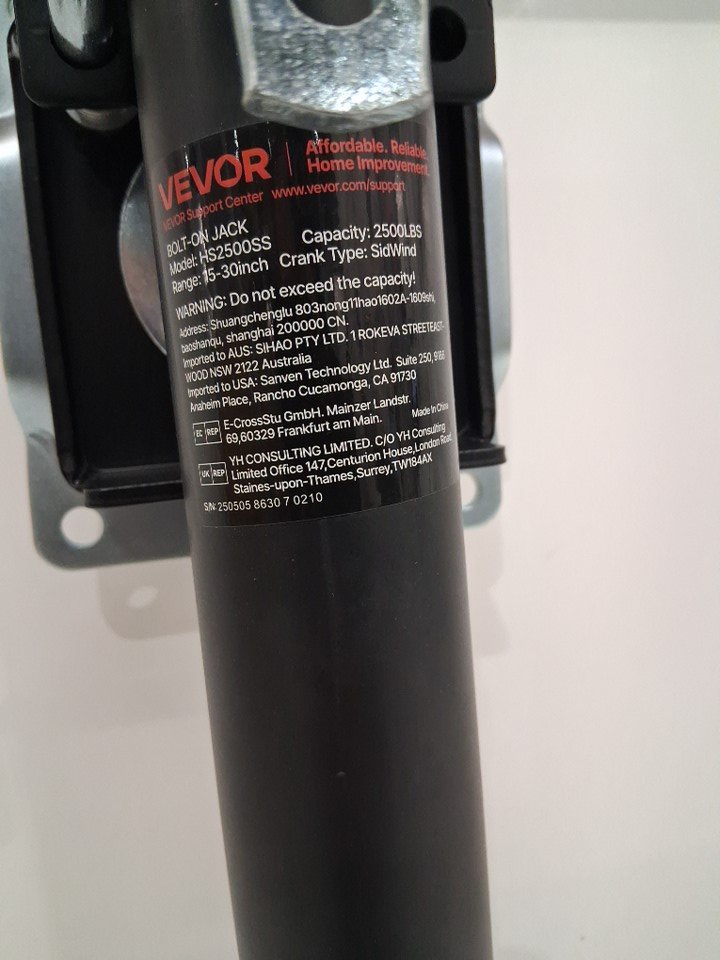 VEVOR bolt on trailer tounge jack stand with handle - 2500lbs max - black (model: tjb-2002s-wk-z)