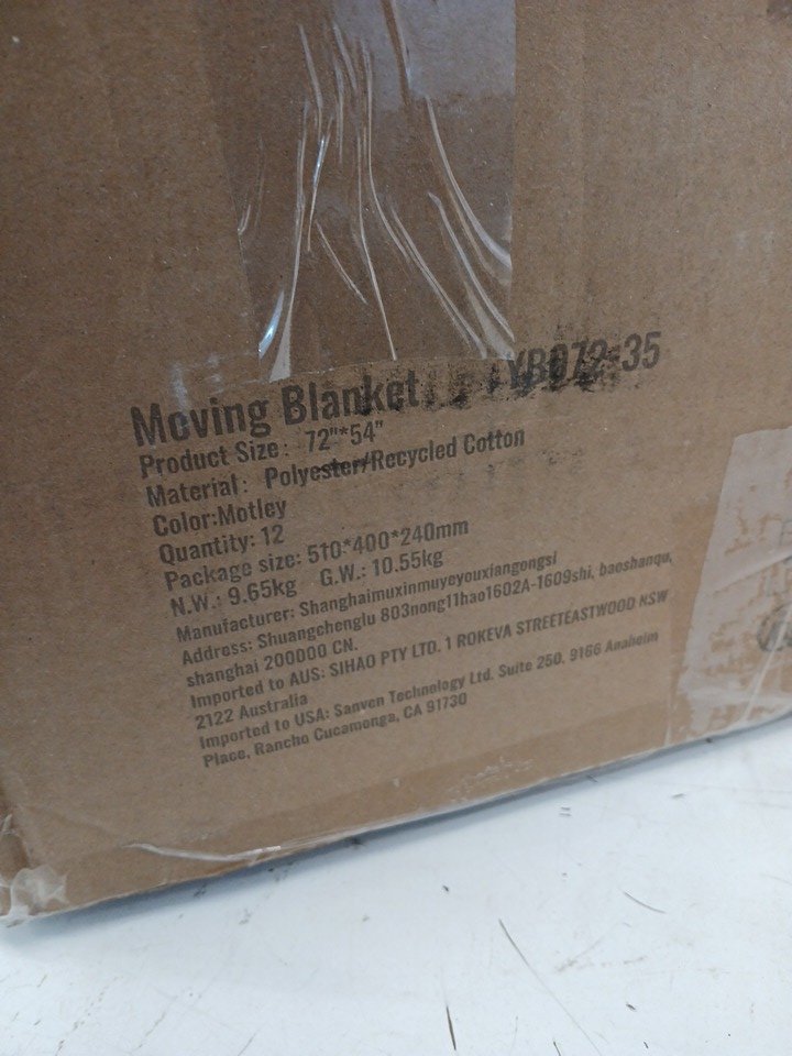 12pk vevor moving blankets - 72" x 54" - polyester/recycled cotton - motley (model: yb072-35)