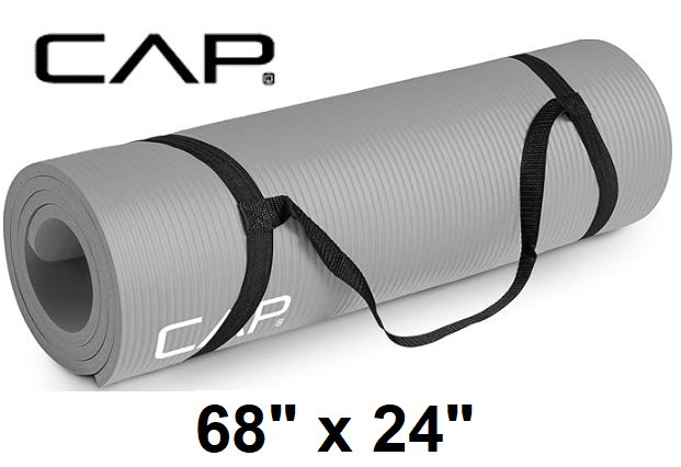 CAP Barbell High Density Exercise Yoga Mat with Strap - 68" x 24"- grey - (model: mtis-6523-12gy)