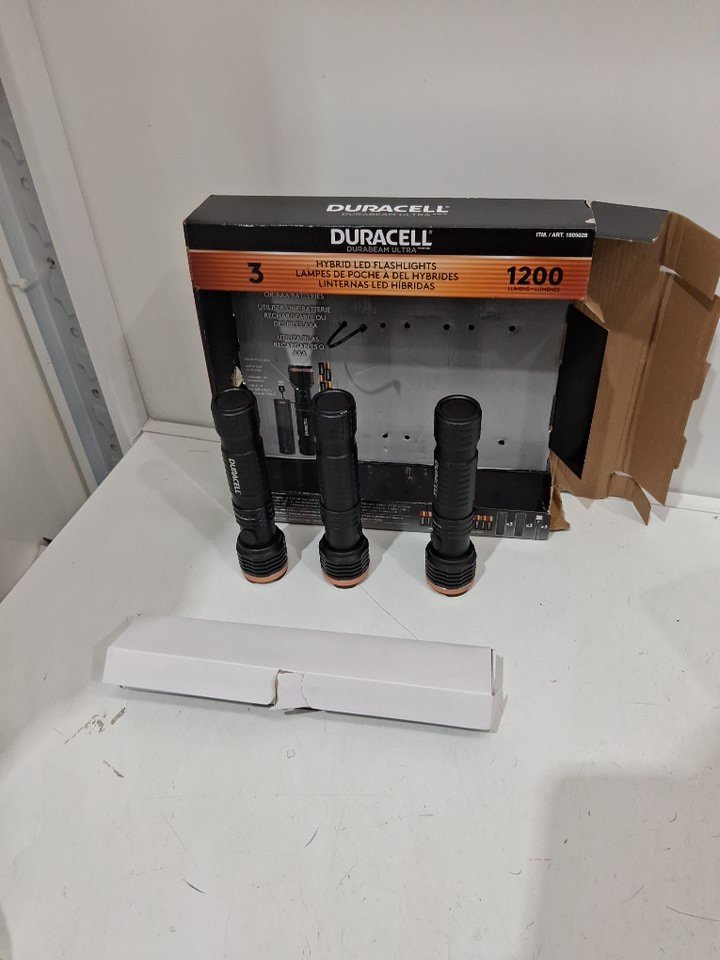 3pk duracell hybrid led flashlights, battery operated or rechargeable battery operated - 1200 lumens