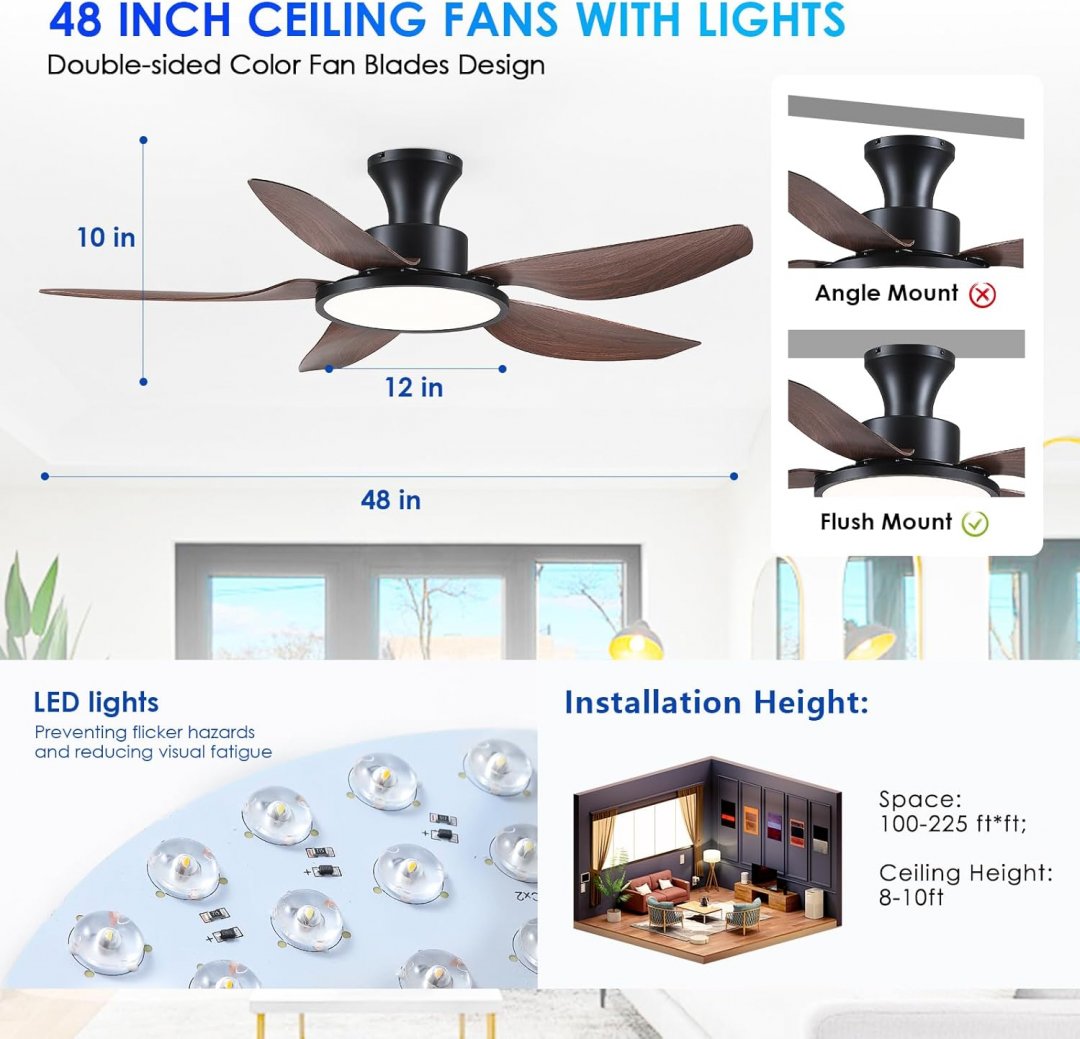 Mpayel Ceiling Fan with dimmable Light & remote - 48" - 3000k to 6000k - brown/black (model: ‎B8308)