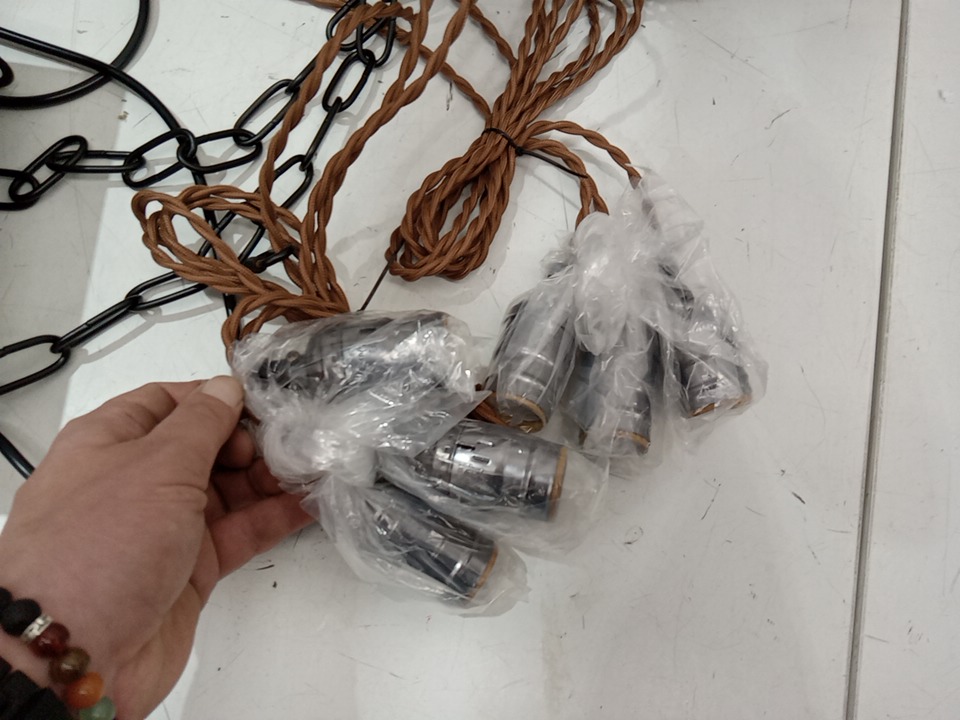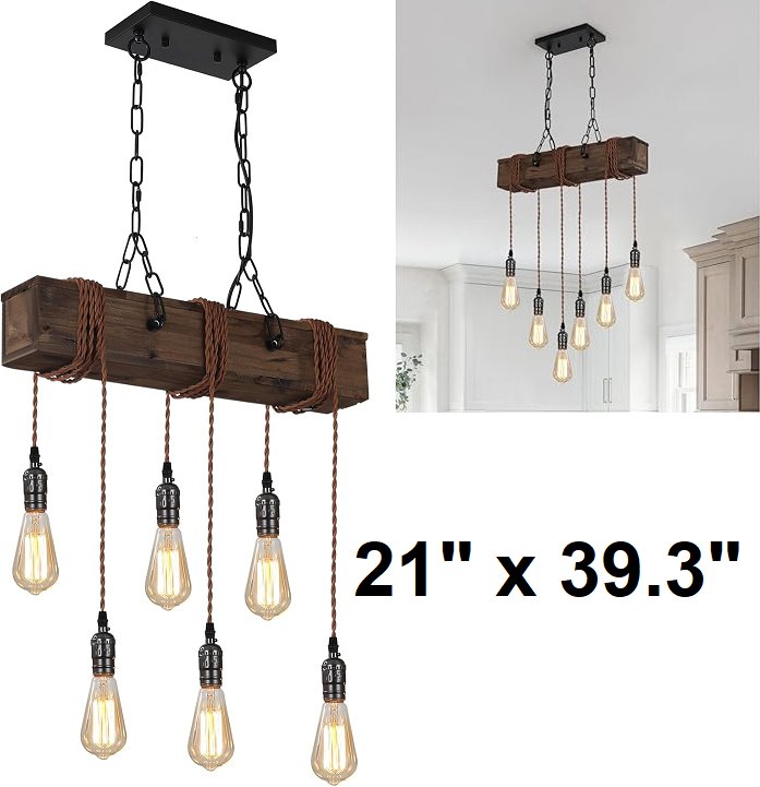 keesfu 6 light farmhouse dinning room chandelier - 21" x 39.3" - e26 bulbs - 120v - brown (model: c-06-02)