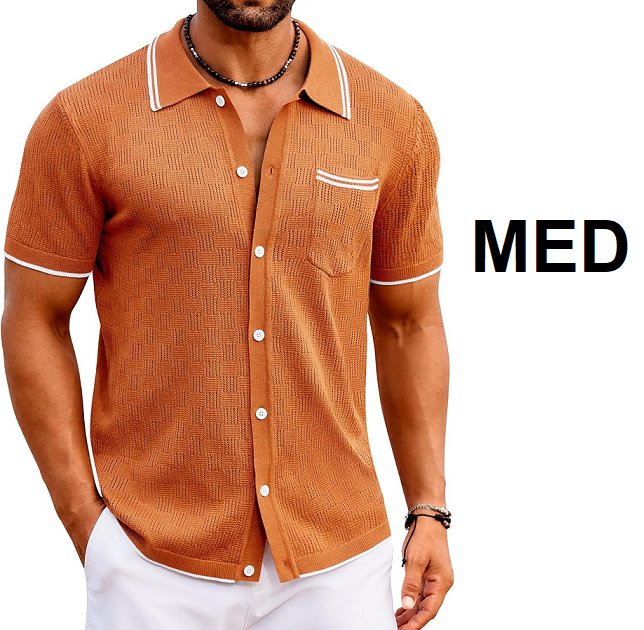 mens coofandy knit button up t shirt with front pocket - medium - burnt orange
