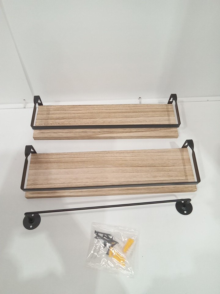 amada homefurnishing Wall Mounted Rustic Floating Shelves with removable towel holder - light brown (model: AMFS01)