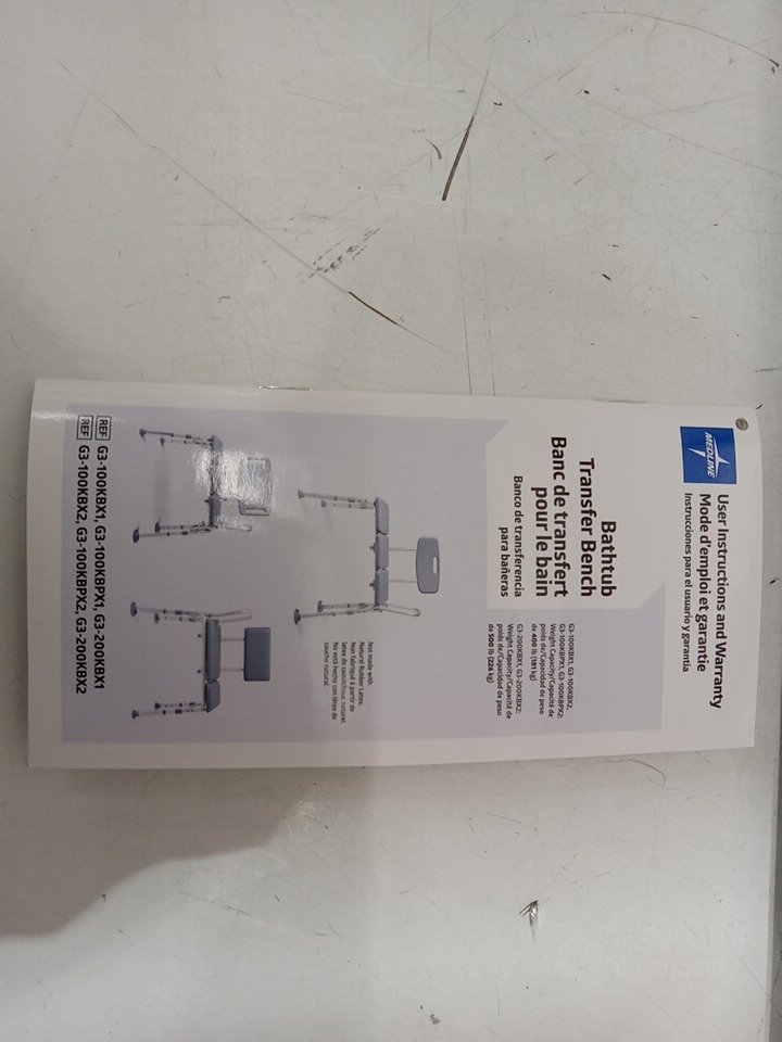 MEDLINE GUARDIAN TRANSFER BENCH WITH BACK support & suction feet - max 500lbs- GREY (MODEL: G3-200KBX1)