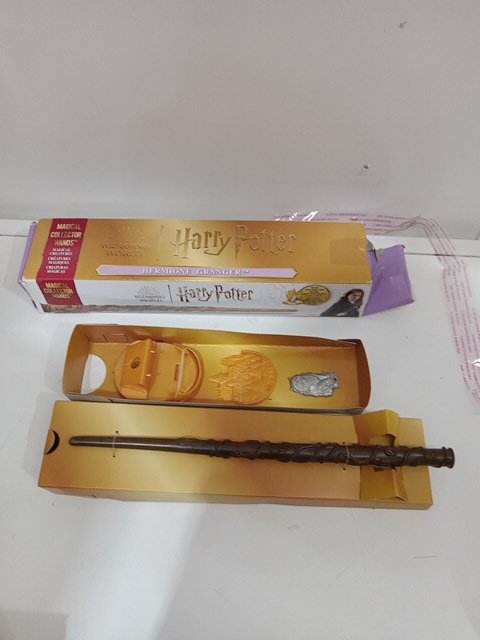 WIZARDING WORLD HARRY POTTER Magical Collector hermione granger WAND with stand and die-cast icon - 12" - brown