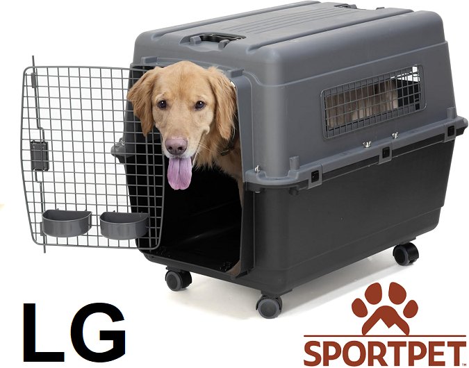 Sport Pet Plastic Dog Kennel - airline safe - LARGE - grey/black