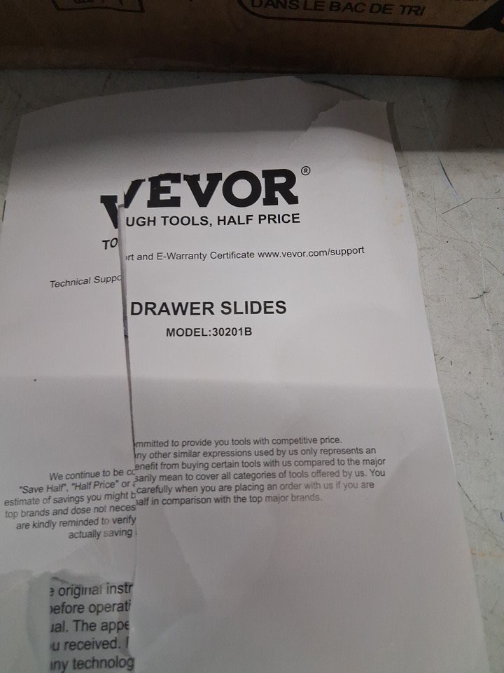 6PK vevor heavy duty extension drawer slides - 18" - silver/grey (model: 30201B.475-6)