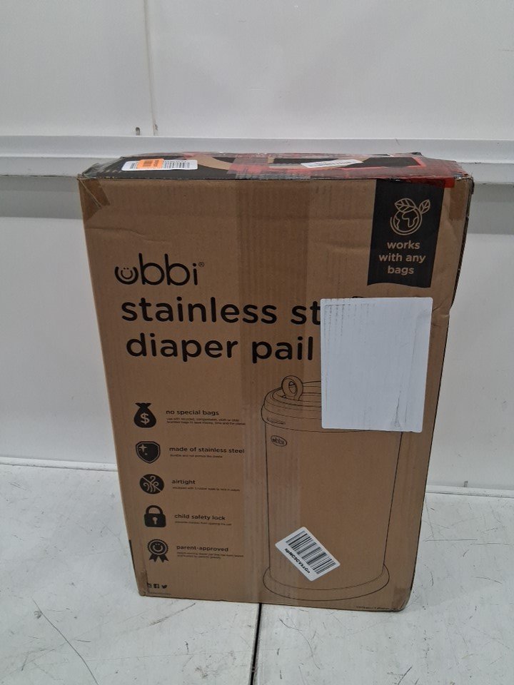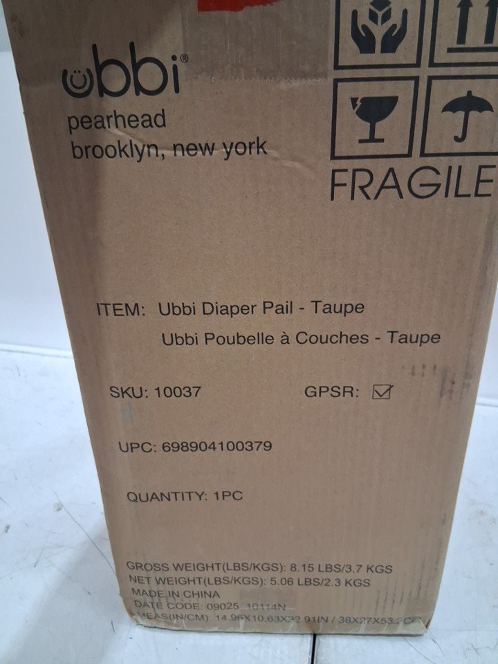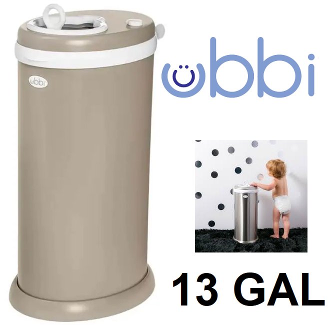 UBBI STAINLESS STEEL diaper PAIL Odor Locking - 13 GAL - 8.5” x 17.75” x 10” - taupe