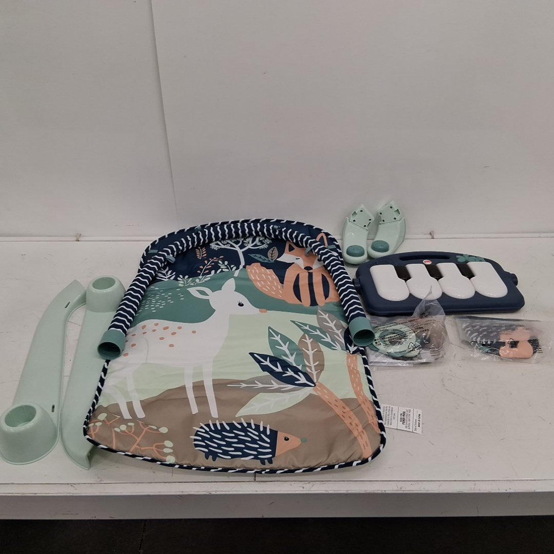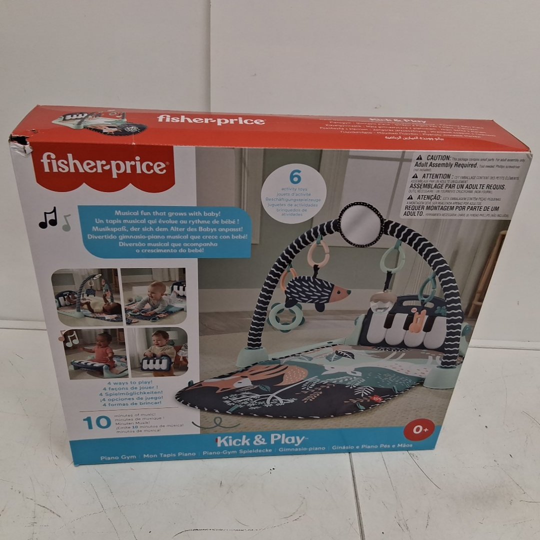 baby FISHER-PRICE kick and play piano gym playmat with musical and sensory toys for healthy development - 4-9 months - navy fawn (model: hkx37)