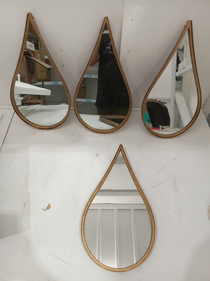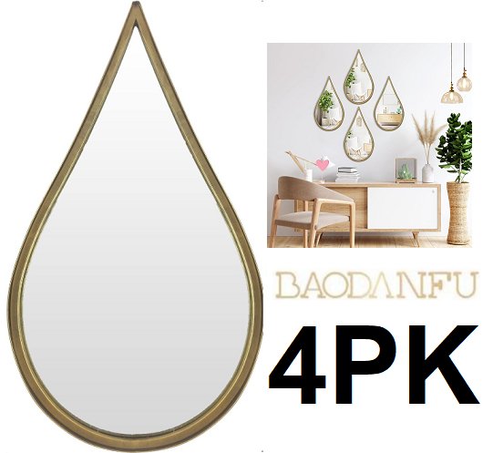 4PK BAODANFU Wall Mounted Mirror Drop Shape -Vintage Gold