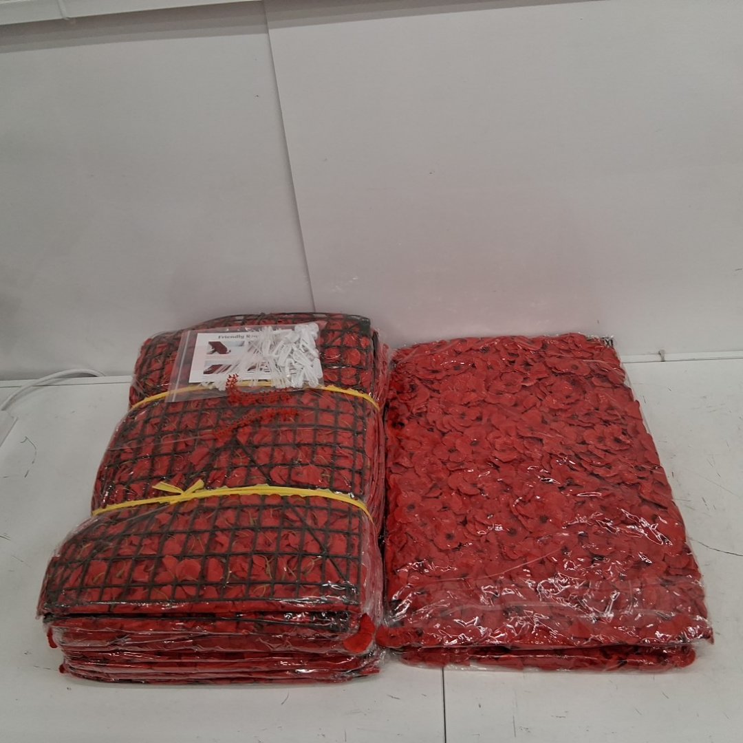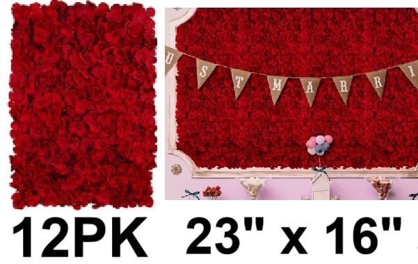 12PK BLOSMON FAKE FLOWER WALL PANELS BACKDROP DECOR FOR INDOOR AND OUTDOOR USE - 23" X 16" PER PANEL - RED