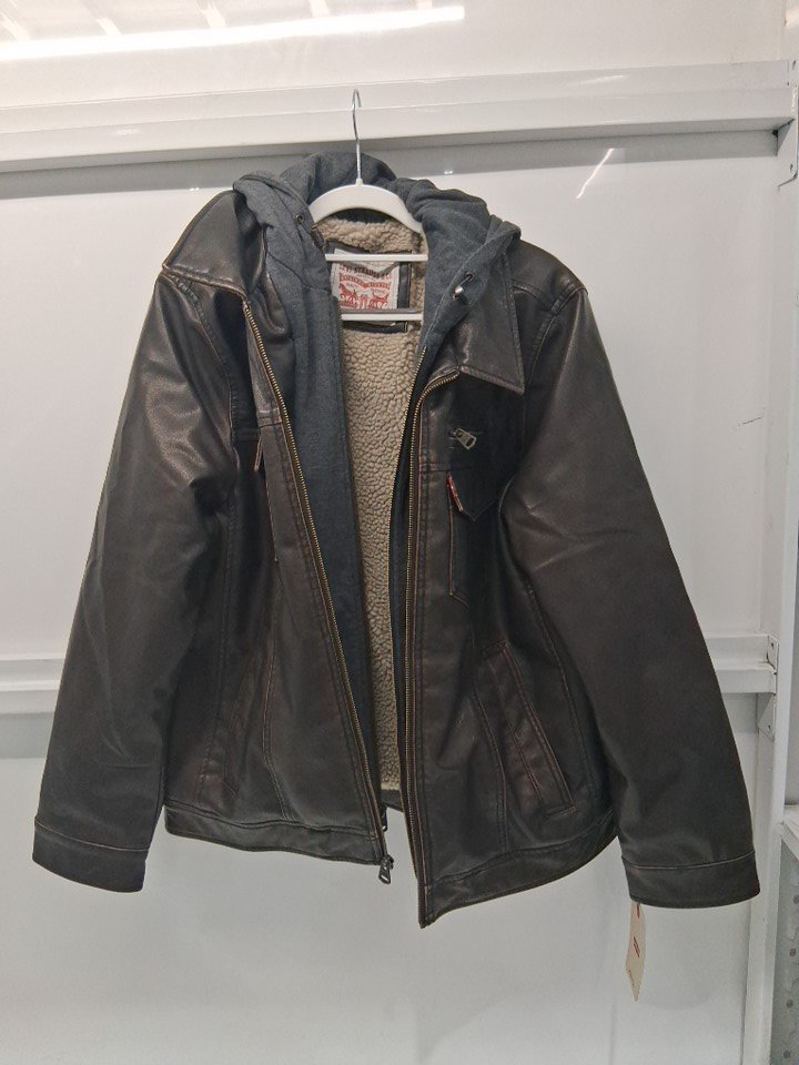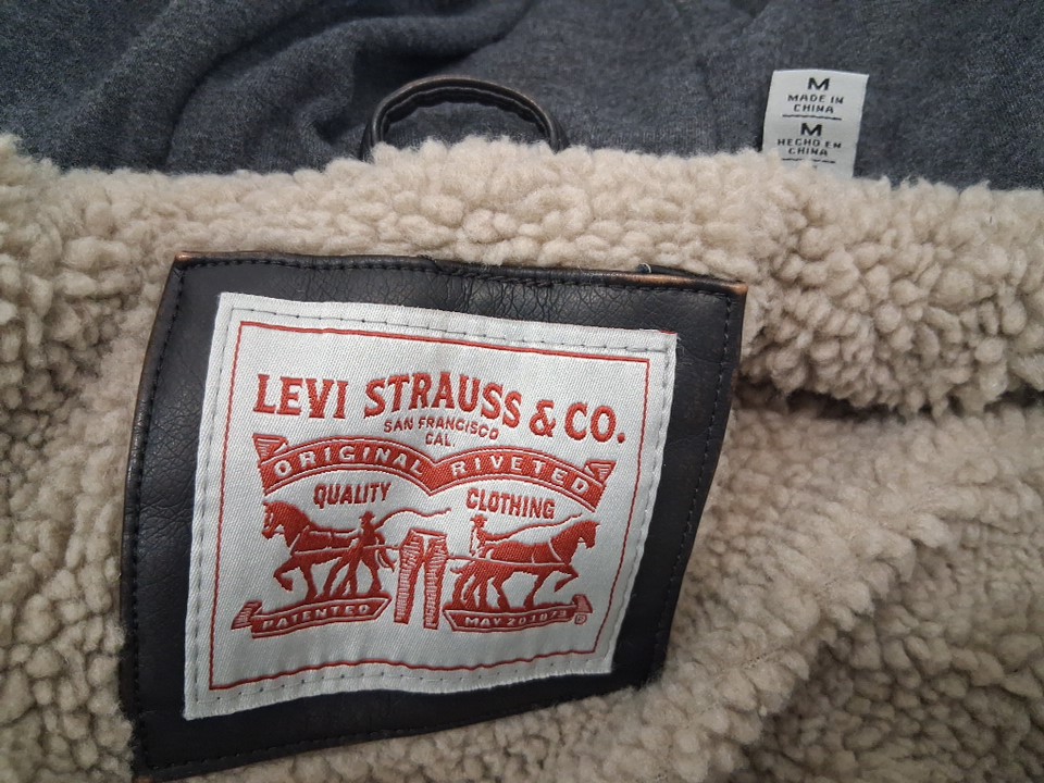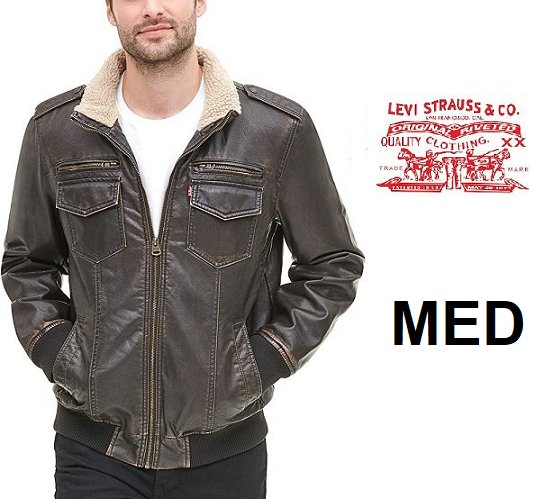 MEN'S LEVI STRAUSS VINTAGE DEER FAUX LEATHER SHERPA LINED BOMBER JACKET - MEDIUM - VINTAGE BROWN