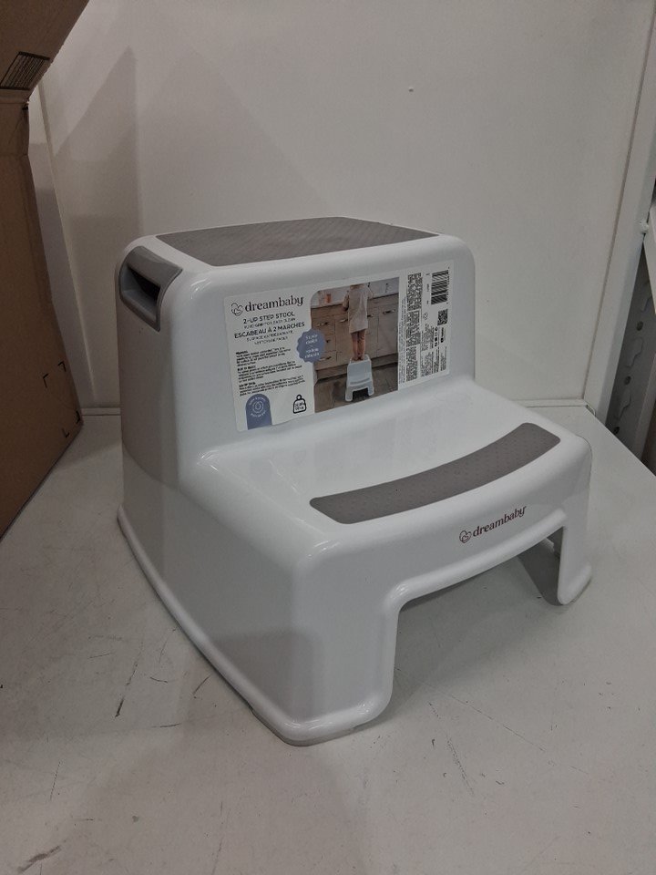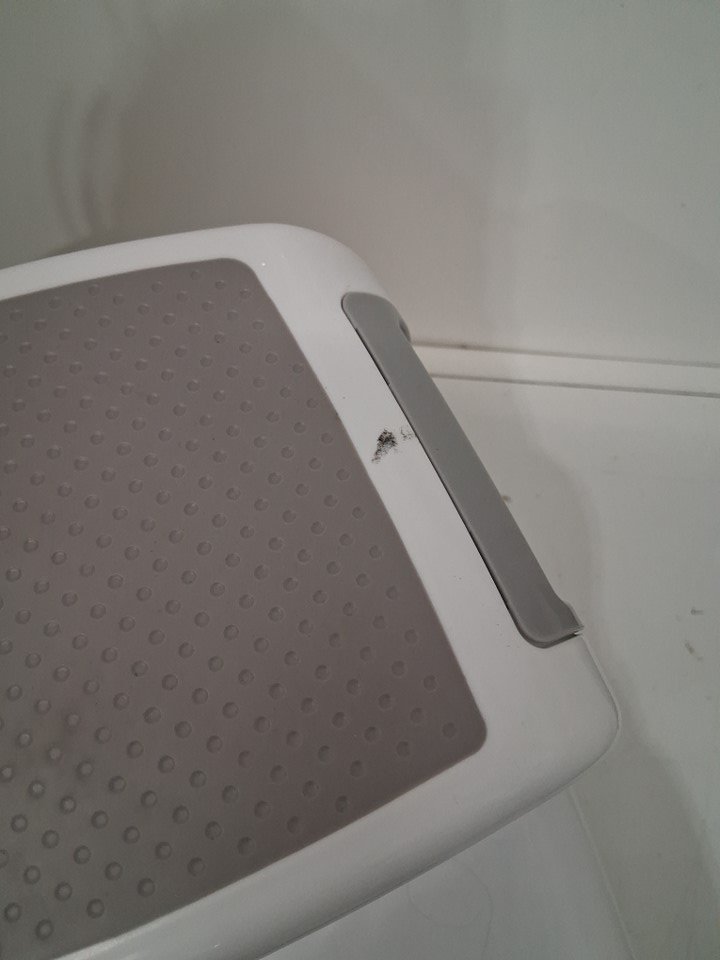 Step stool has a black scuff mark on top of it