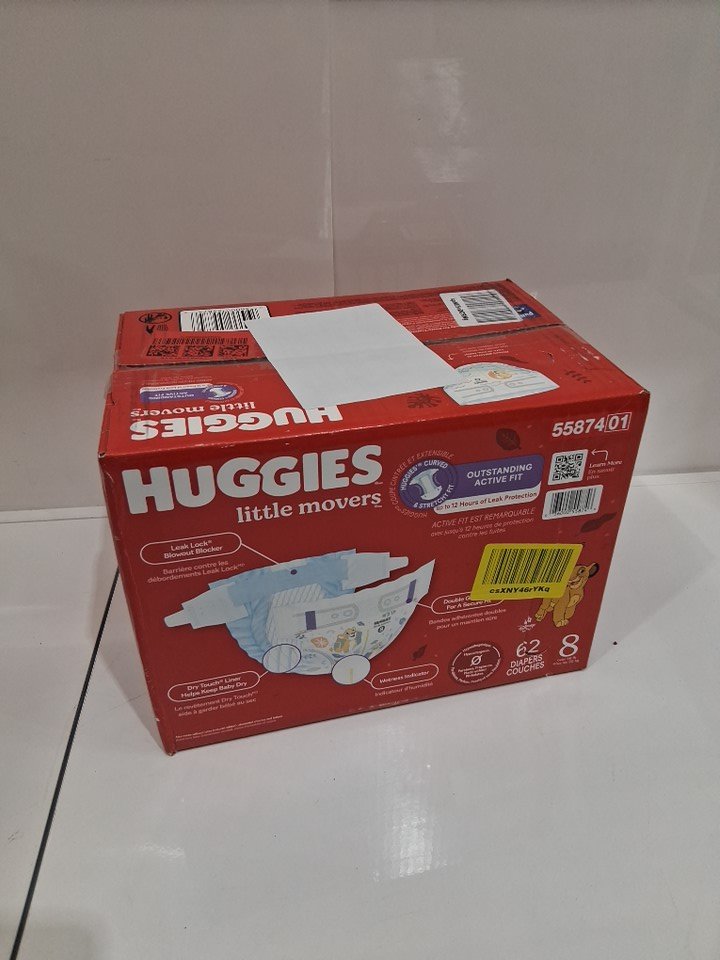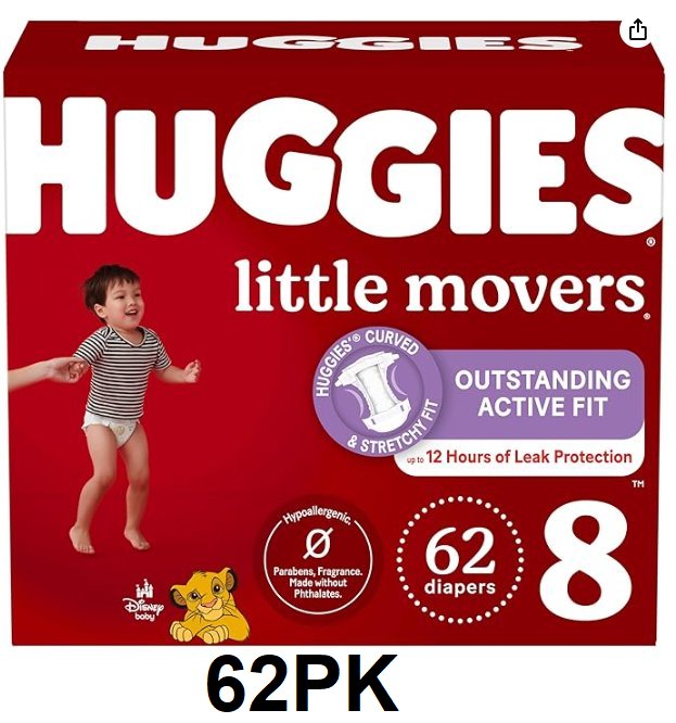62PK Huggies Little Movers Diapers, Size 8 (46lb.)