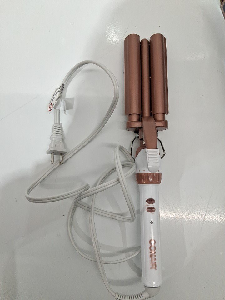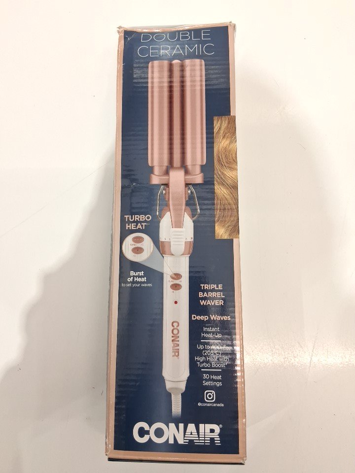 CONAIR DOUBLE CERAMIC TRIPLE BARREL CURL STYLING WAVER FOR DEEP WAVES - 3/4" BARRELS - WHITE/ROSE GOLD (MODEL: CD704C)
